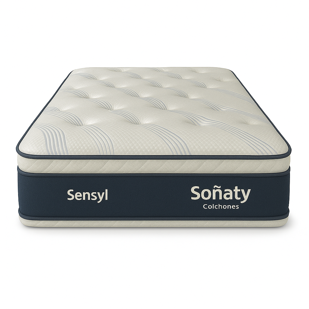 El colchón Sensyl cuenta con un sistema de amortiguadores, donde cada uno incorpora tecnología polibonnell, esta característica contribuye de manera significativa a conferirle firmeza al núcleo del colchón. Además, presenta dos pillowtops de diferente altura en cada una de sus caras, este diseño dual brinda dos sensaciones distintas en un solo colchón, lo que lo convierte en un producto sumamente versátil y adaptable a tus preferencias.